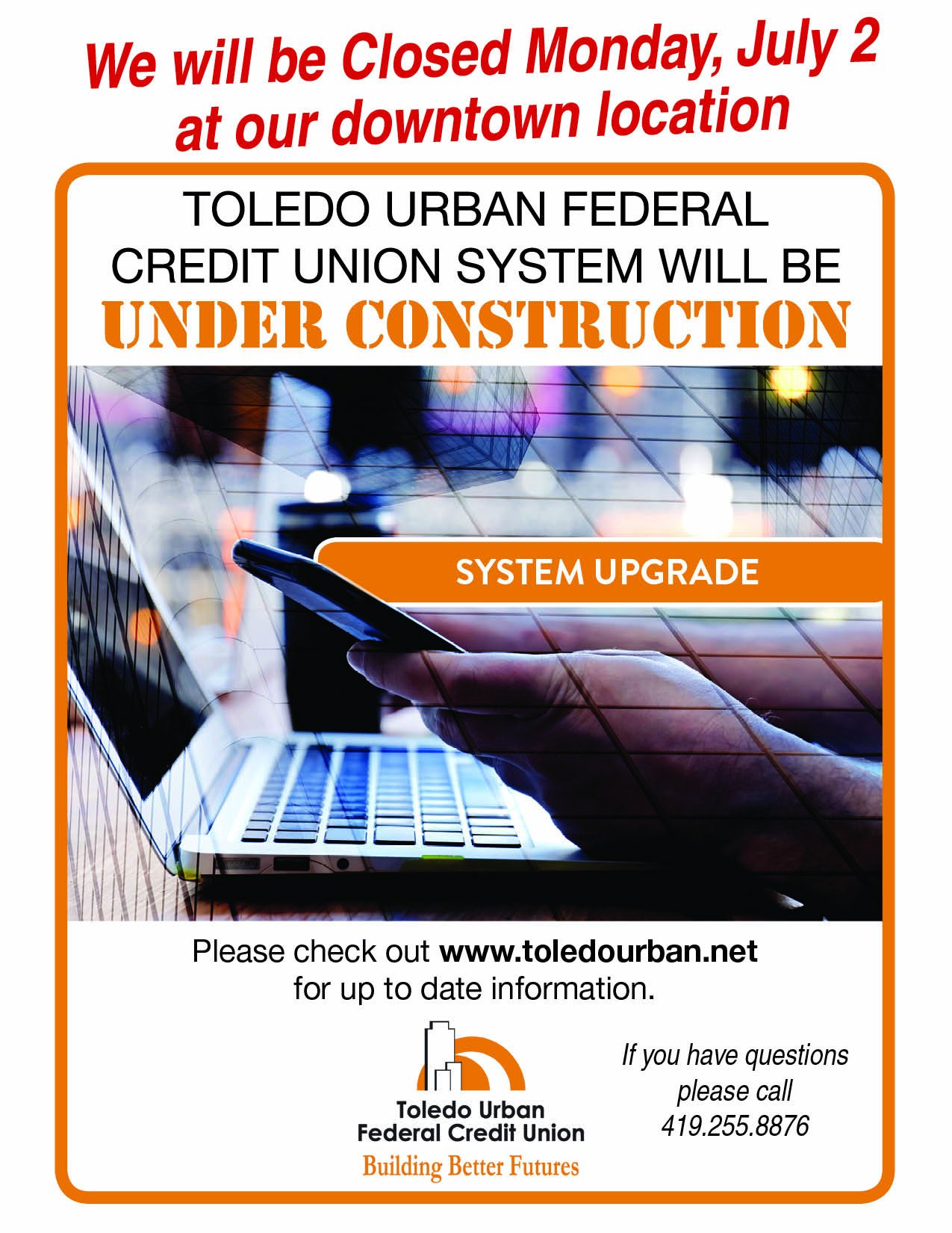 Flyer for the Toledo Urban System Upgrade and closures